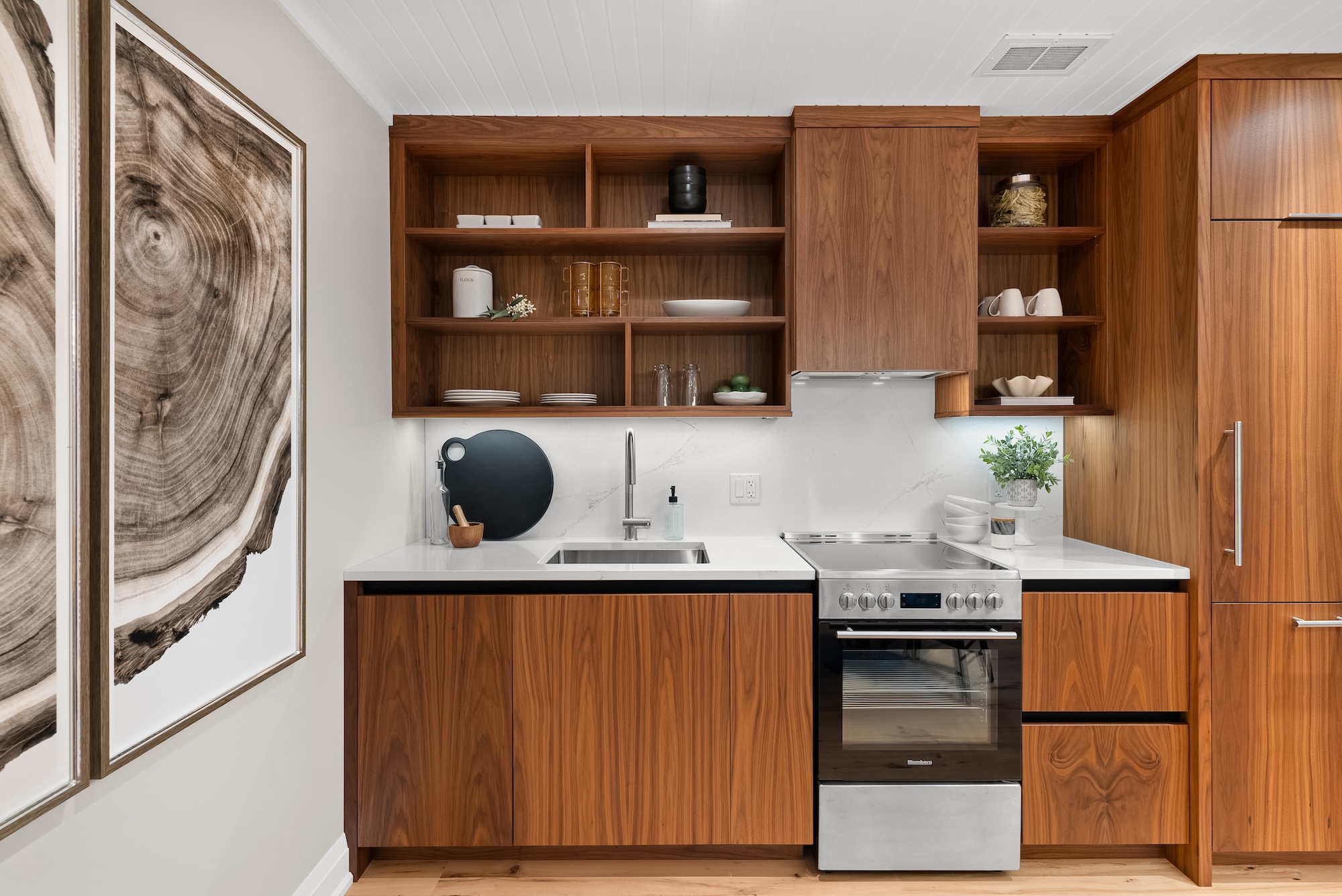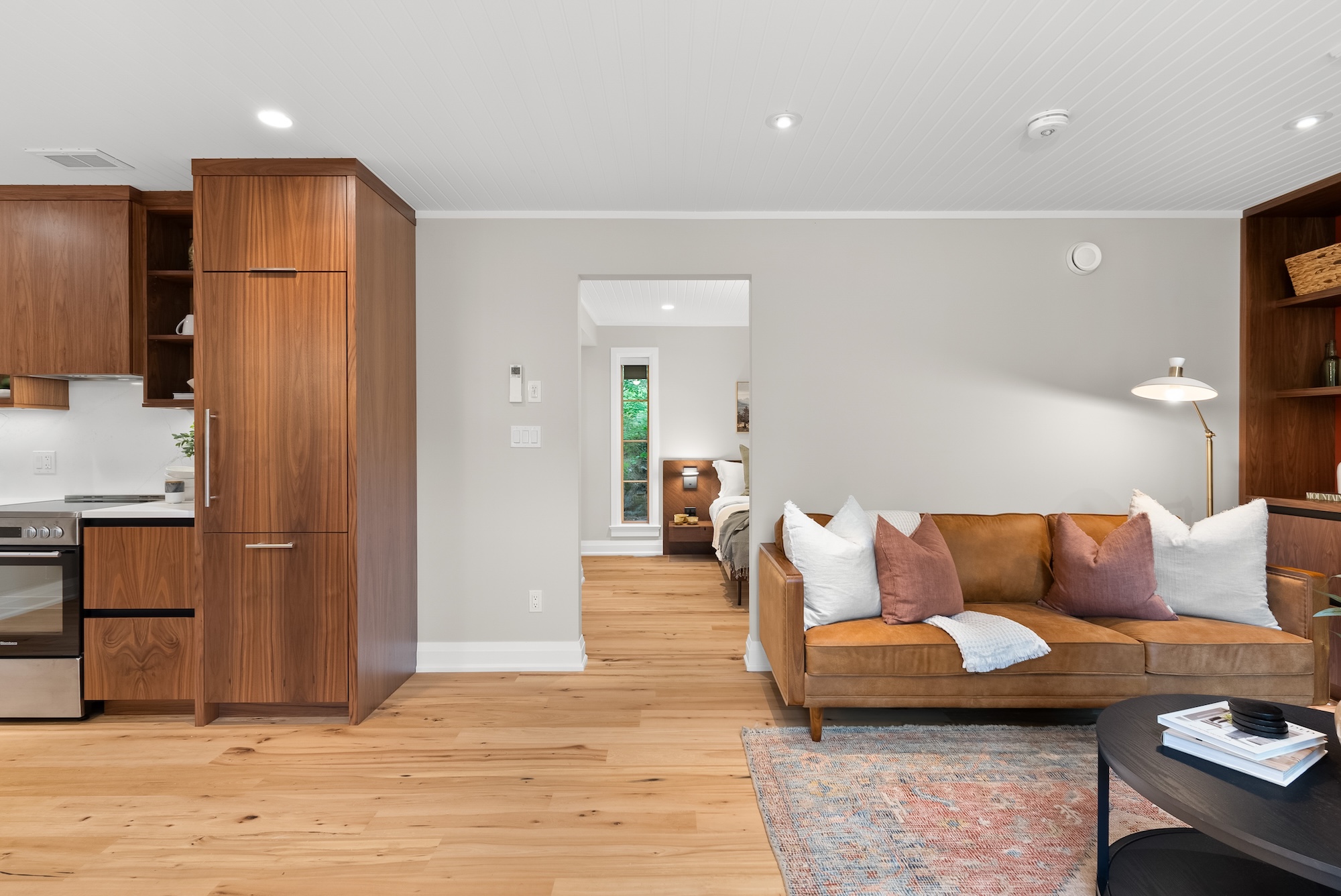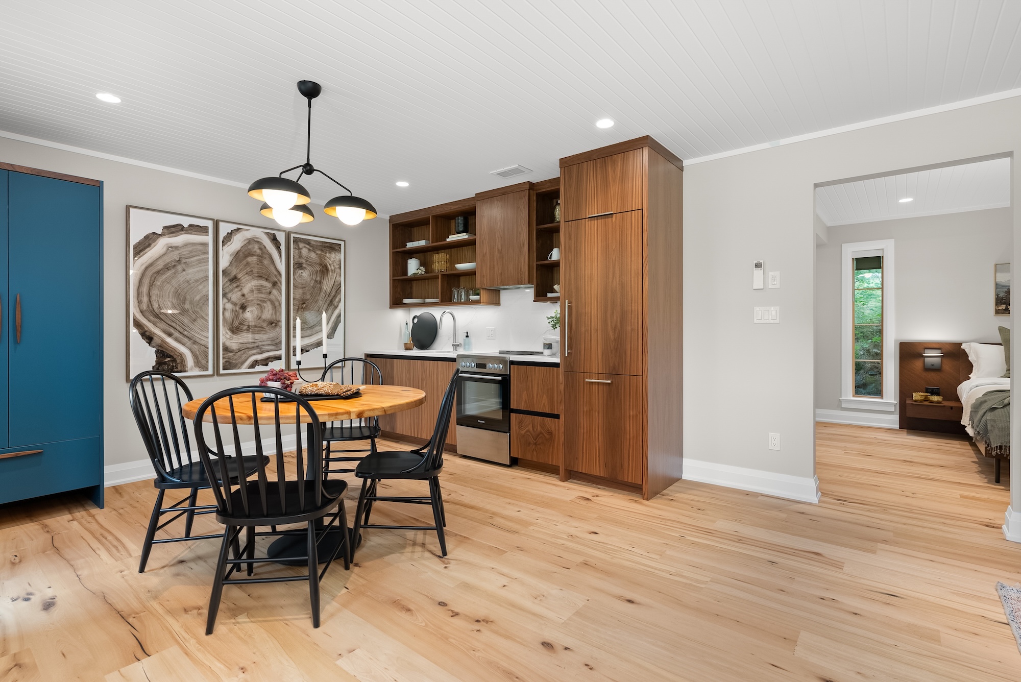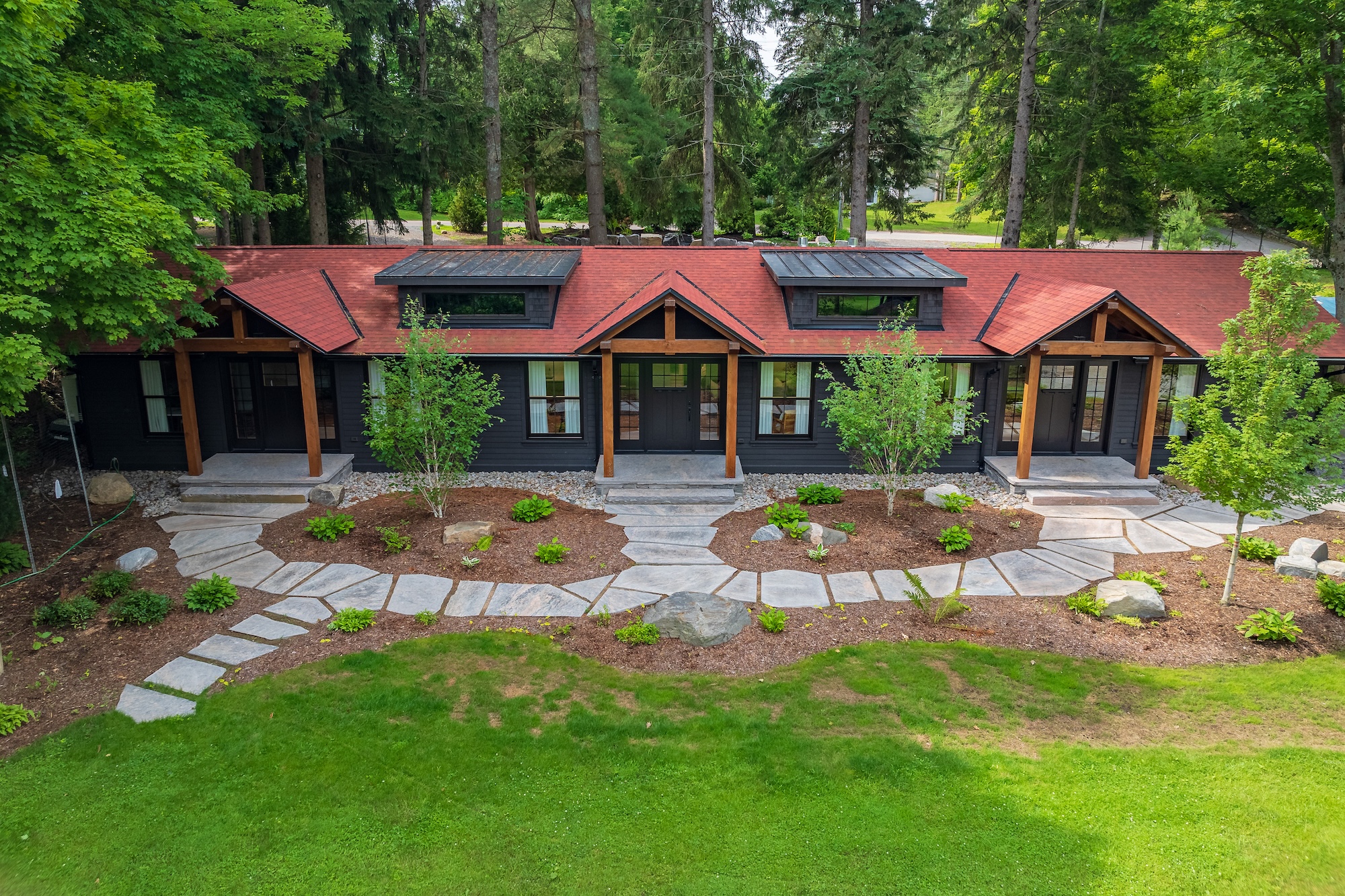 This custom renovation transformed a former six-plex resort building into three refined suites inspired by a “Mid-Century Modern Muskoka” vision. Natural wood, clean lines, and thoughtful details create a calm, grounded retreat.